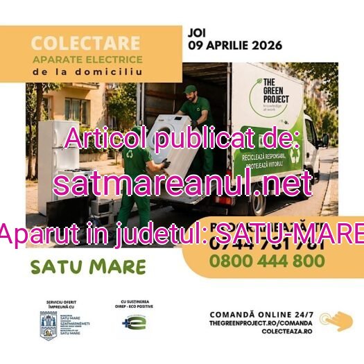 Locuitorii municipiului Satu Mare sunt invitați să participe joi, 9 aprilie 2026, la o nouă campanie de colectare a deșeurilor electrice și electronice, organizată pentru a încuraja reciclarea responsabilă și protejarea mediului.