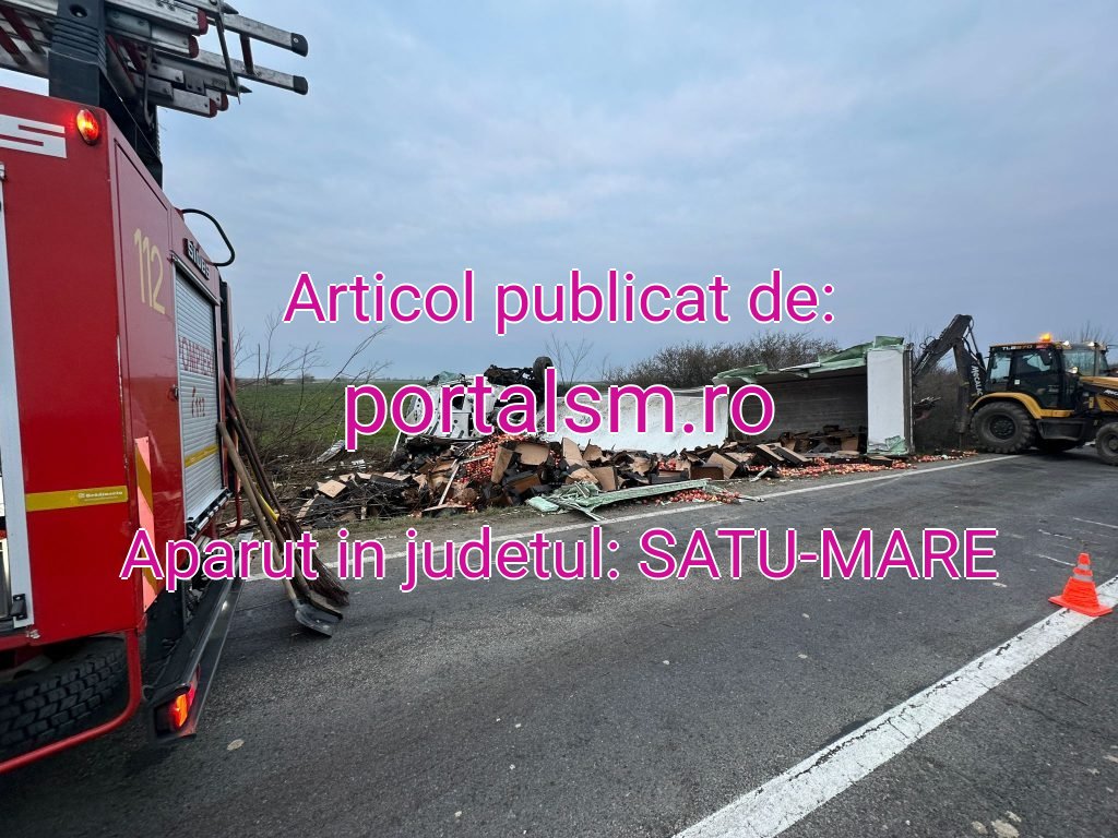 Autocamionul transporta mere, iar în urma accidentului încărcătura s-a împrăștiat pe carosabil, fiind necesară intervenția unui utilaj pentru degajarea drumului. Traficul rutier în zonă a fost complet blocat pe durata intervenției.