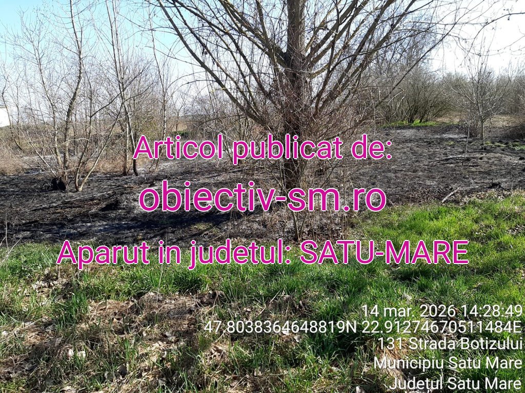 Un alt incendiu de vegetație uscată a fost semnalat în municipiul Satu Mare, pe strada Botizului, în apropierea unui service auto. La locul solicitării a intervenit un echipaj din cadrul Detașamentului de Pompieri Satu Mare, cu o autospecială de stingere și 5 cadre militare.