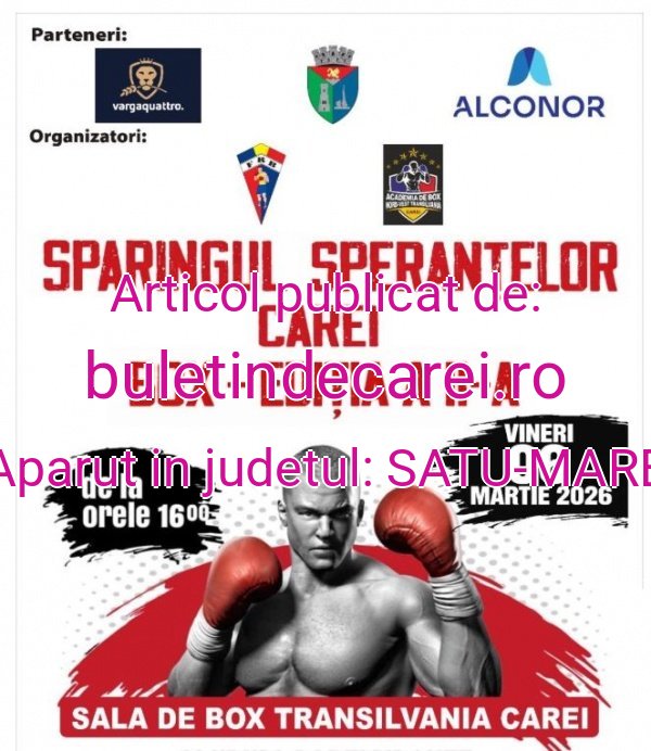 Vineri, 6 martie 2026, de la ora 16:00, în ,,Sala de Box Transilvania,, din Carei va avea loc „Sparingul Speranțelor” – ediția a II-a, un eveniment care promite meciuri spectaculoase și o participare record.